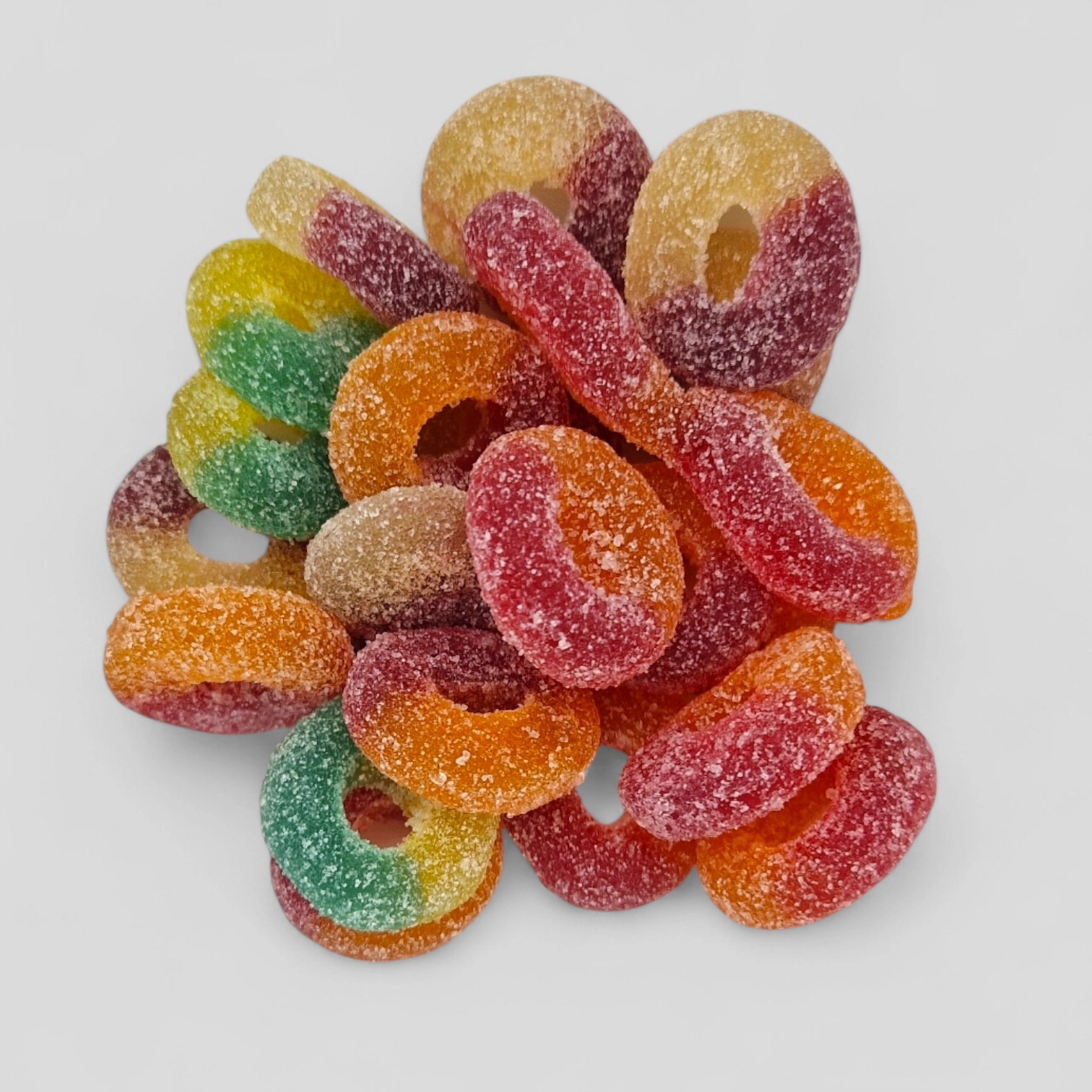Guminukai spalvoti žiedai – ryškūs, minkšti ir vaisių skonio guminukai, kurių žiedų forma suteikia dar daugiau smagumo mėgaujantis kiekvienu kąsniu. Švelniai kramtoma tekstūra ir subalansuotas saldumo bei rūgštumo derinys sukuria nepamirštamą skonio patirtį. Puikus pasirinkimas tiek kasdieniams užkandžiams, tiek dalintis su draugais ir artimaisiais!